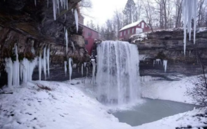 坐落在拥有悠久历史盐泉的罗克韦保护区内,这座18.3米高的瀑布在冬季会幻化成一座壮观的冰雕。沿着著名的布鲁斯步道前行即可抵达。当您置身瀑布前,透过晶莹剔透的冰层,还能隐约看到其中蕴含的棕色与浅蓝色,层次分明,展现了大自然独特的艺术造诣。